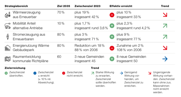 Als messbare Ziele für die Umsetzung hat der Regierungsrat Bereichsziele definieret, die bis 2035 erreicht werden sollen.