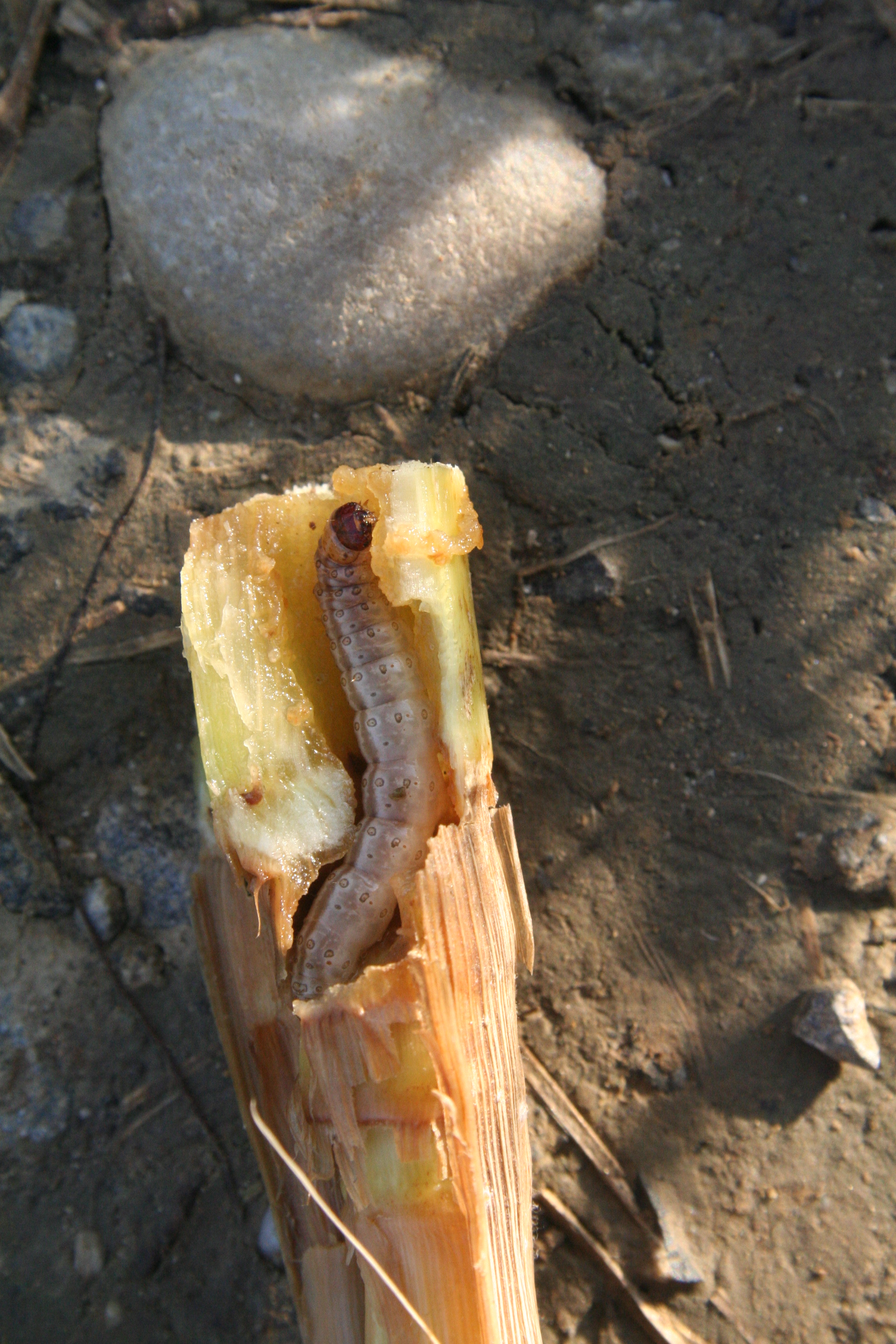 - Die Maiszünslerraupen verpuppen sich zur Zeit gerade zu einer dunkelbraunen Puppe in den Böden von letztjährigen Maisflächen, wo die Stoppeln nicht sauber gemulcht oder zerkleinert und untergepflügt wurden. Daraus entwickeln sich im Juni die Falter, welche in die diesjährigen Maisparzellen einfliegen. Nach der Paarung legen sie ihre Eier an den Blattunterseiten ab, woraus im August die schädlichen Larven schlüpfen.