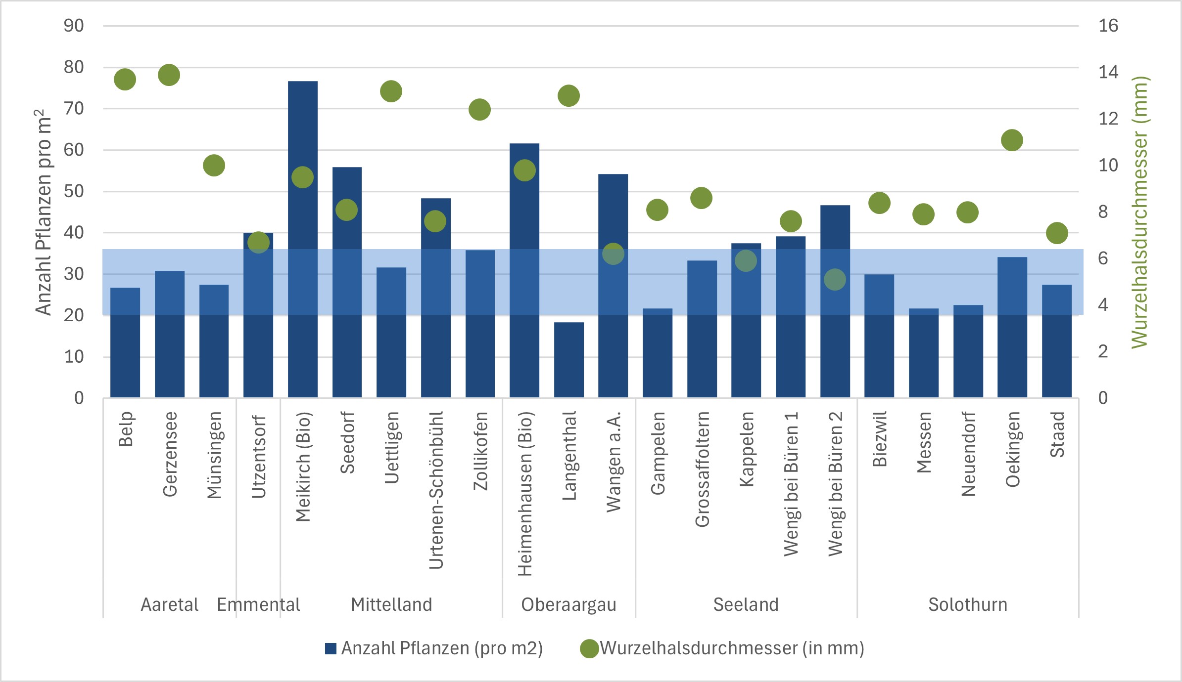 - Idealerweise hat man gemäss Terres Inovia vor dem Winter zwischen 20 und 35 Pflanzen pro m2 – je nach Sorte und Saattechnik (Drillsaat vs. Reihensaat).