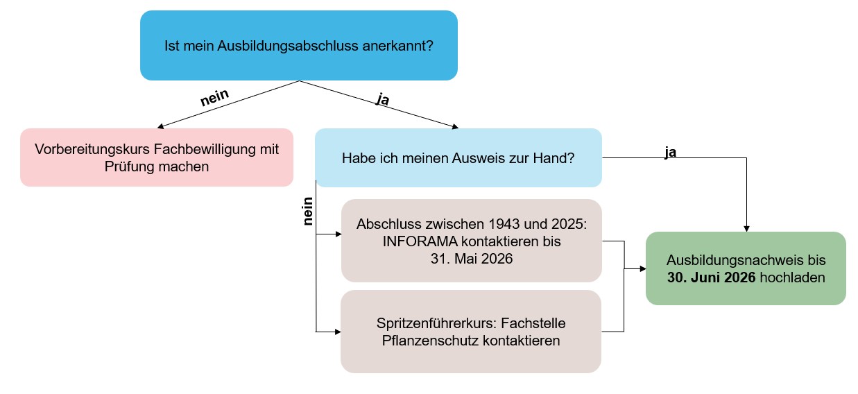 Bis zum 31. Dezember 2026 ist Ihre bisherige Fachbewilligung gültig, sofern diese oder Ihr Ausbildungsabschluss von einer registrierten Bildungsinstitution oder einer landwirtschaftlichen Schule ausgestellt wurde.