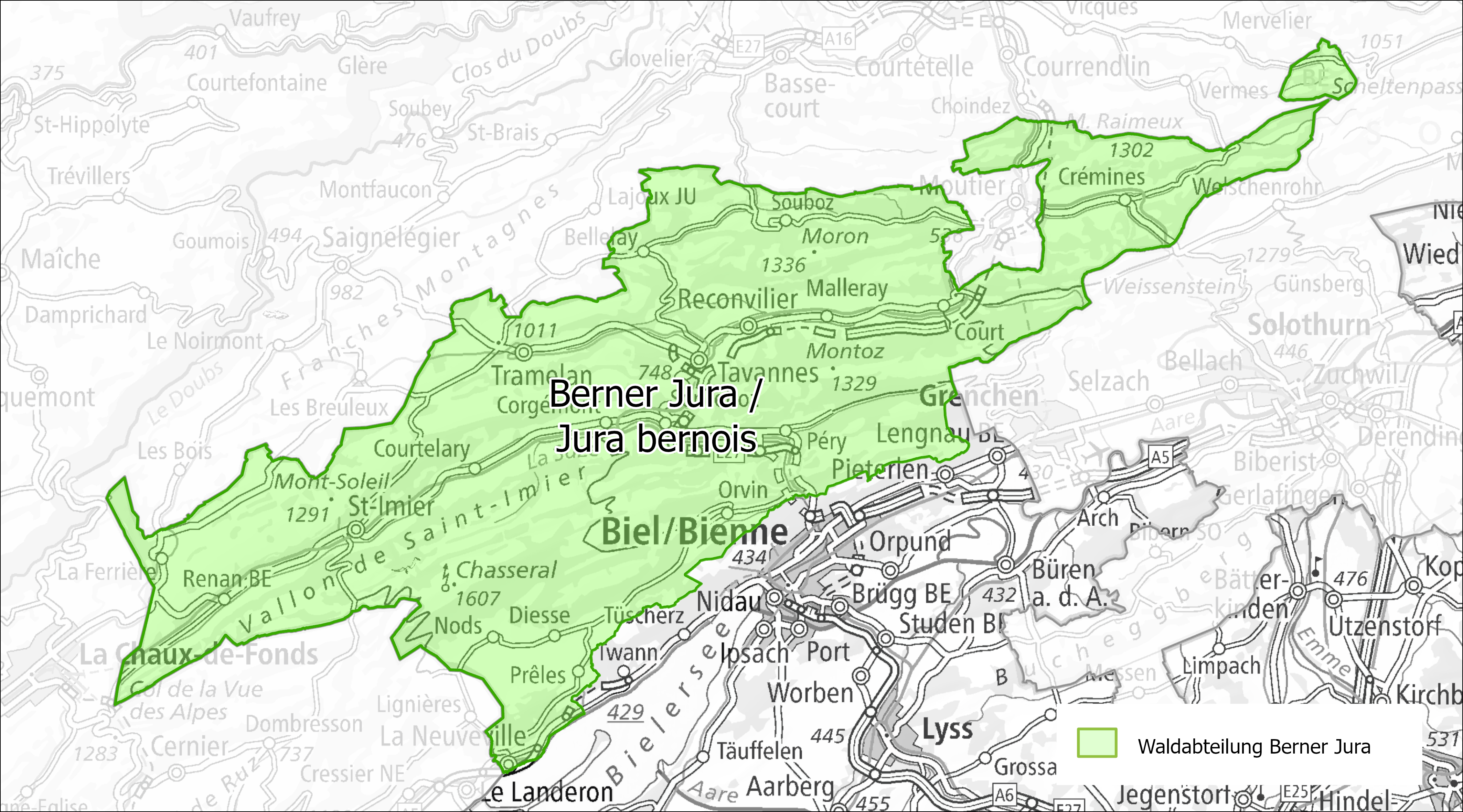 Hier finden Sie laufend Resultate aus der Erarbeitung der regionalen Waldpläne (RWP) der Waldabteilung (WA) Berner Jura, 2. Generation.